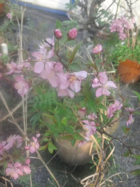 庭梅 ユスラ梅に似た淡黄色の可愛い花をつける。